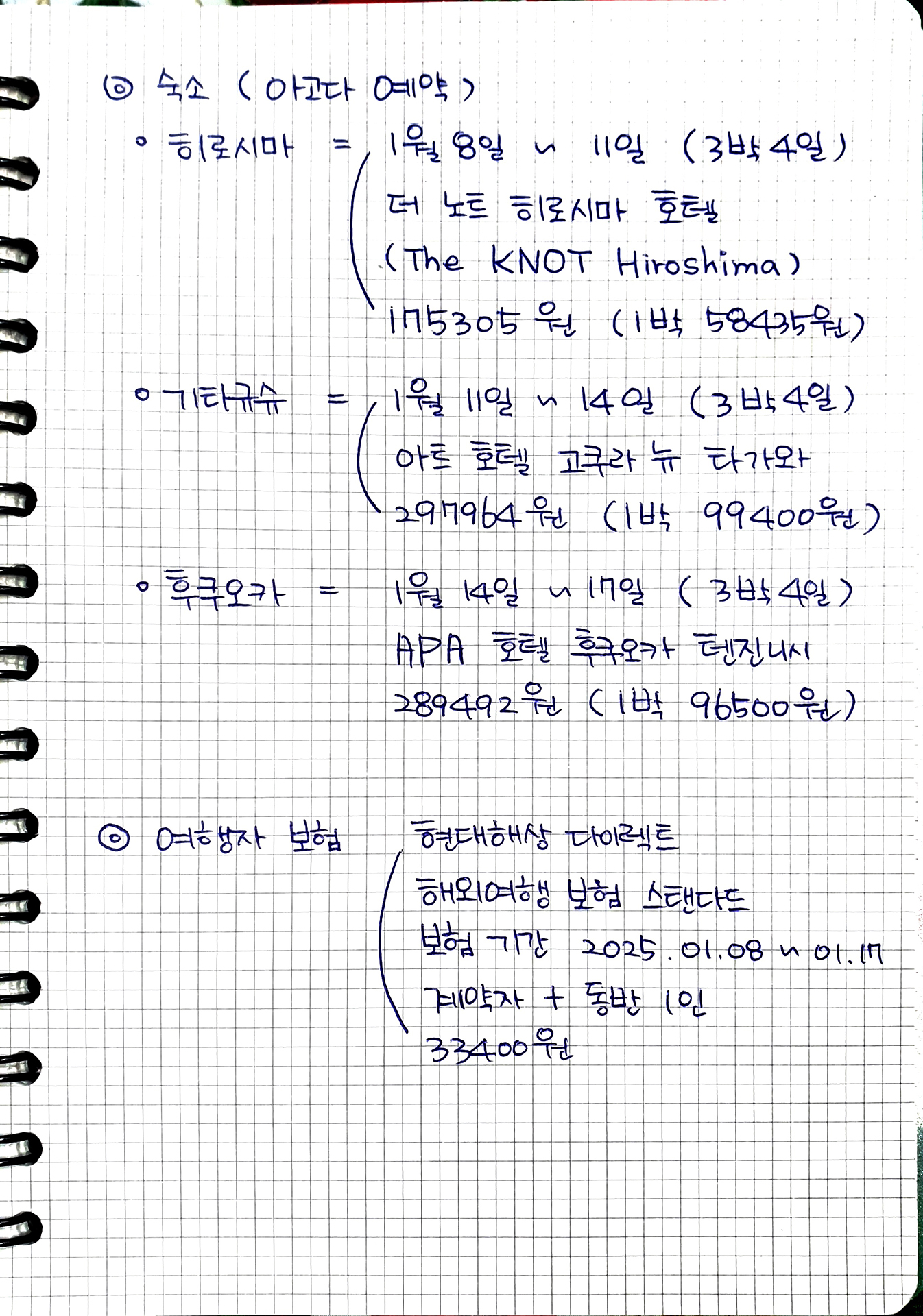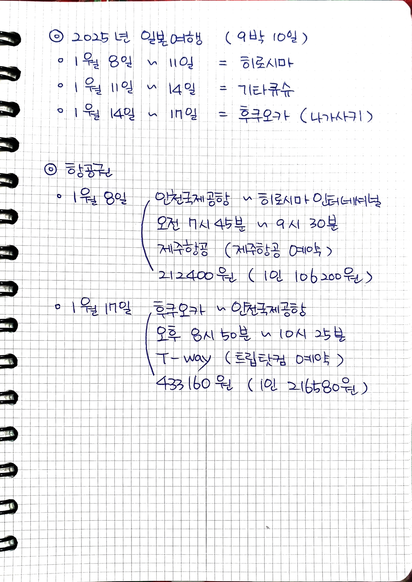● 20250107-20250117 (일본 : Thomas+Ju) -출발/인천공항(0107)-히로시마(0108)-기타큐슈(0111)-후쿠오카(나가사키)(0114)-귀국(0117)