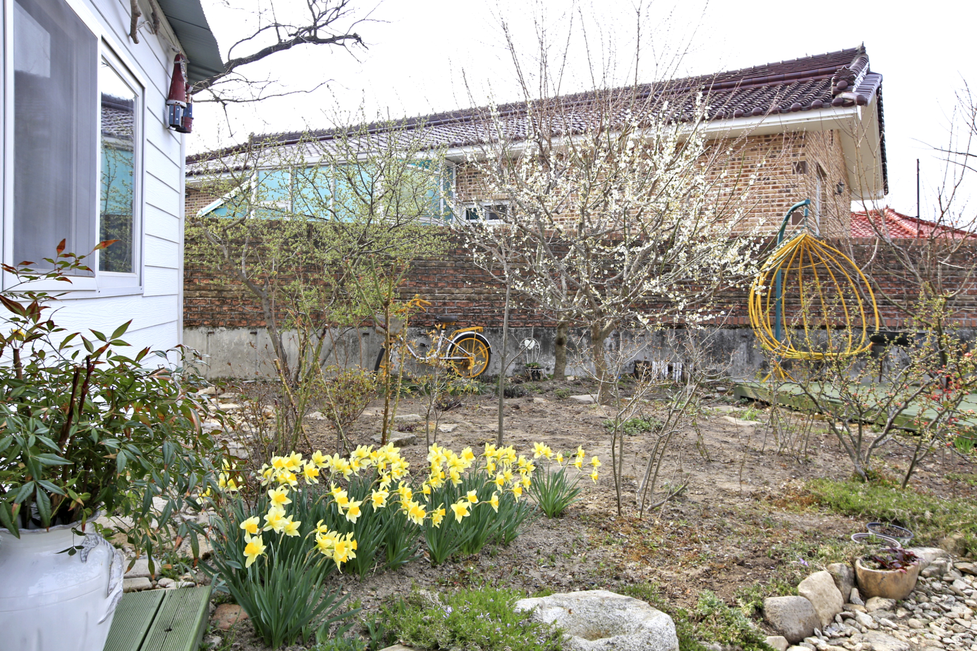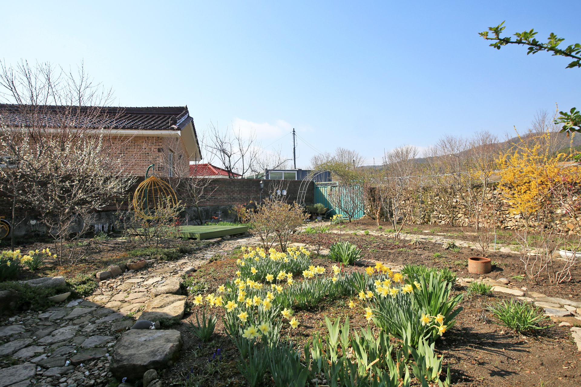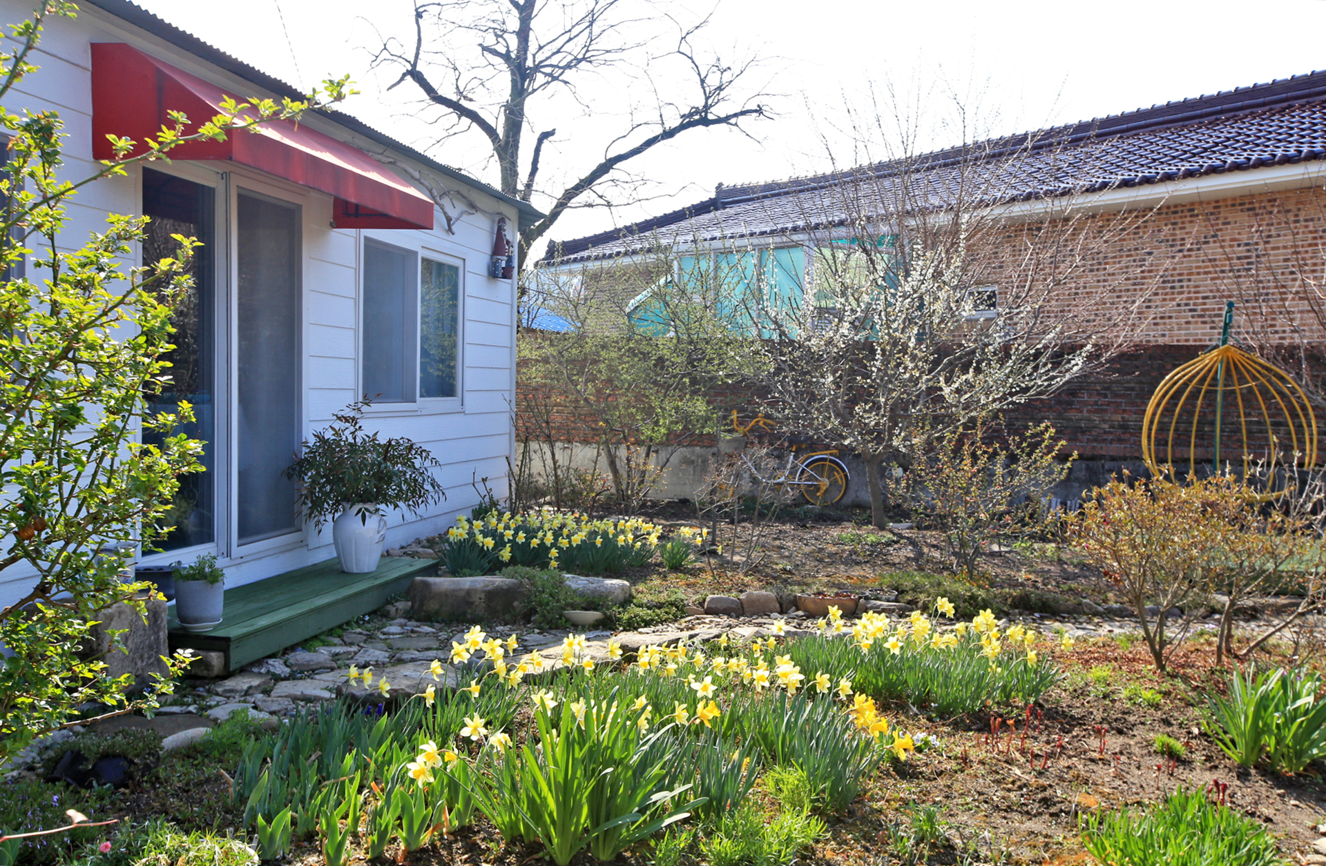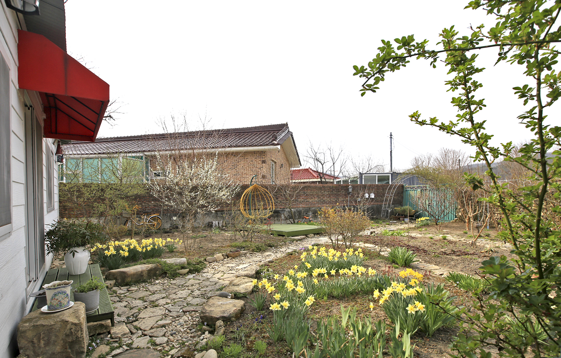 요즈음 성북동집 꽃밭에는 매화가 지기 시작하였고, 수선화와 개나리가 한창이다. 앵두나무와 명자나무와 꽃잔디가 꽃이 피기 시작하였고, 복숭아나무와 박태기나무가 곧 꽃을 피울 상태이다. 무스카리와 할미꽃과 서울제비꽃과 삼색제비꽃도 많이 피었다. 평년보다 조금 늦게 피기 시작하였지만 화려하고 풍성한 편이다.