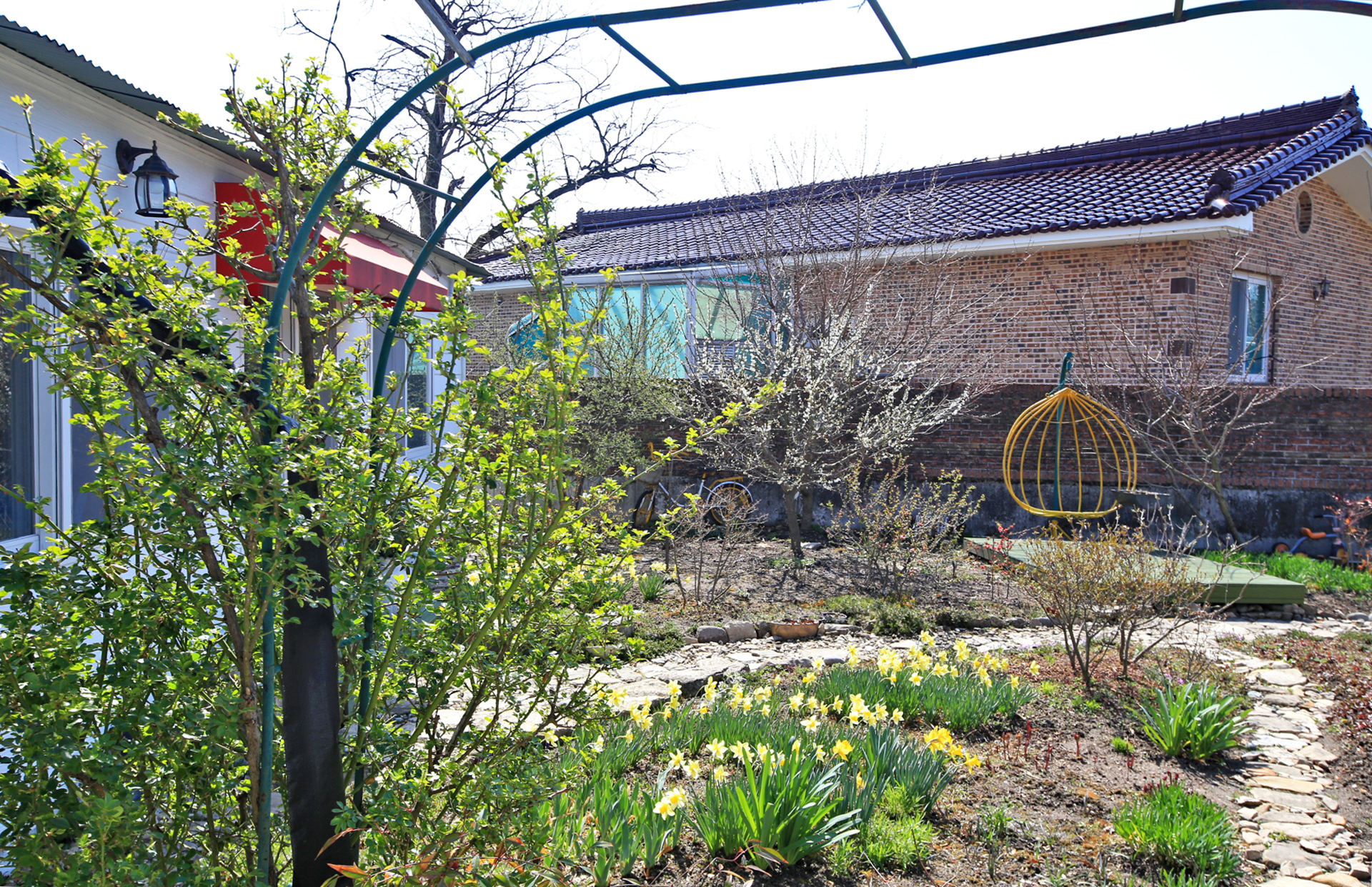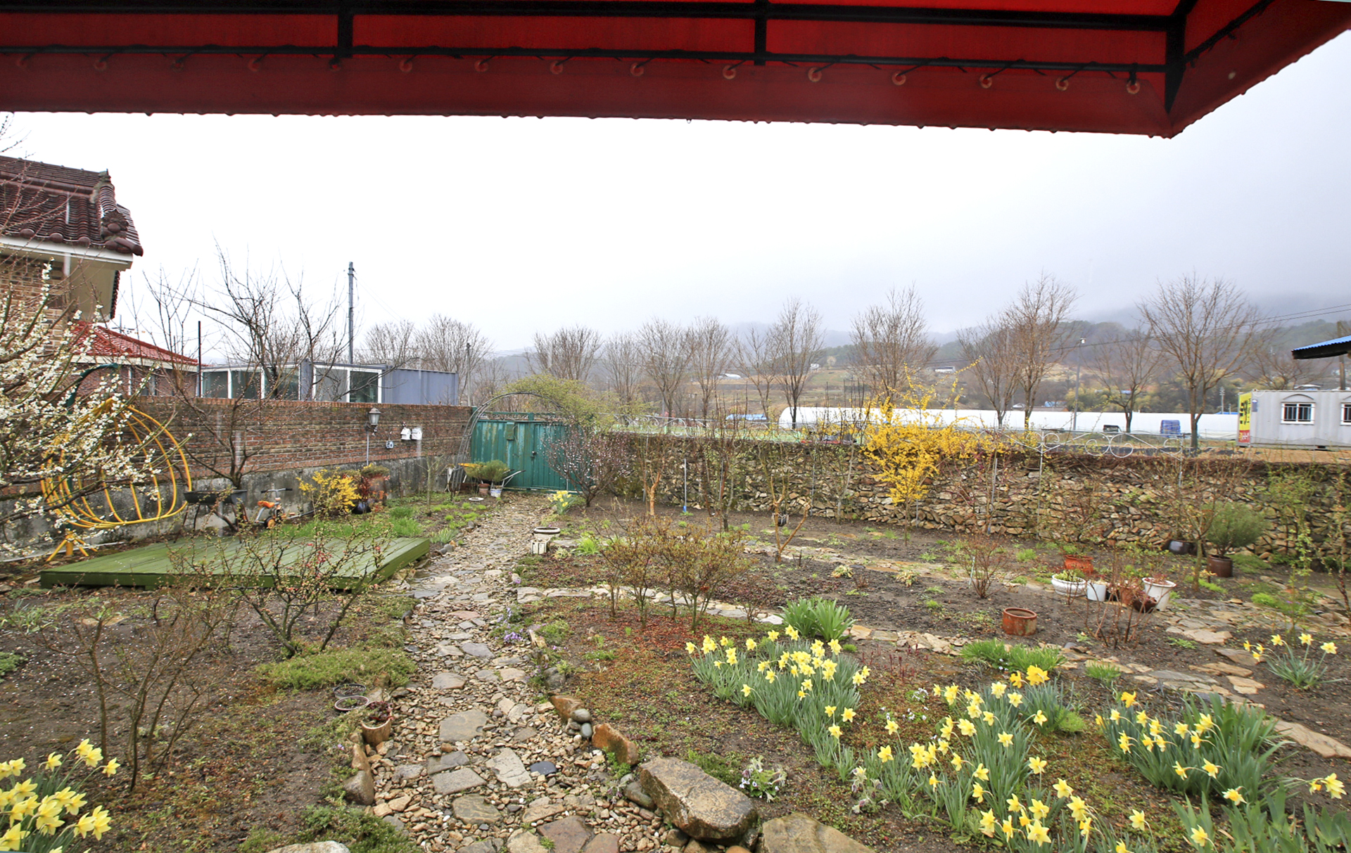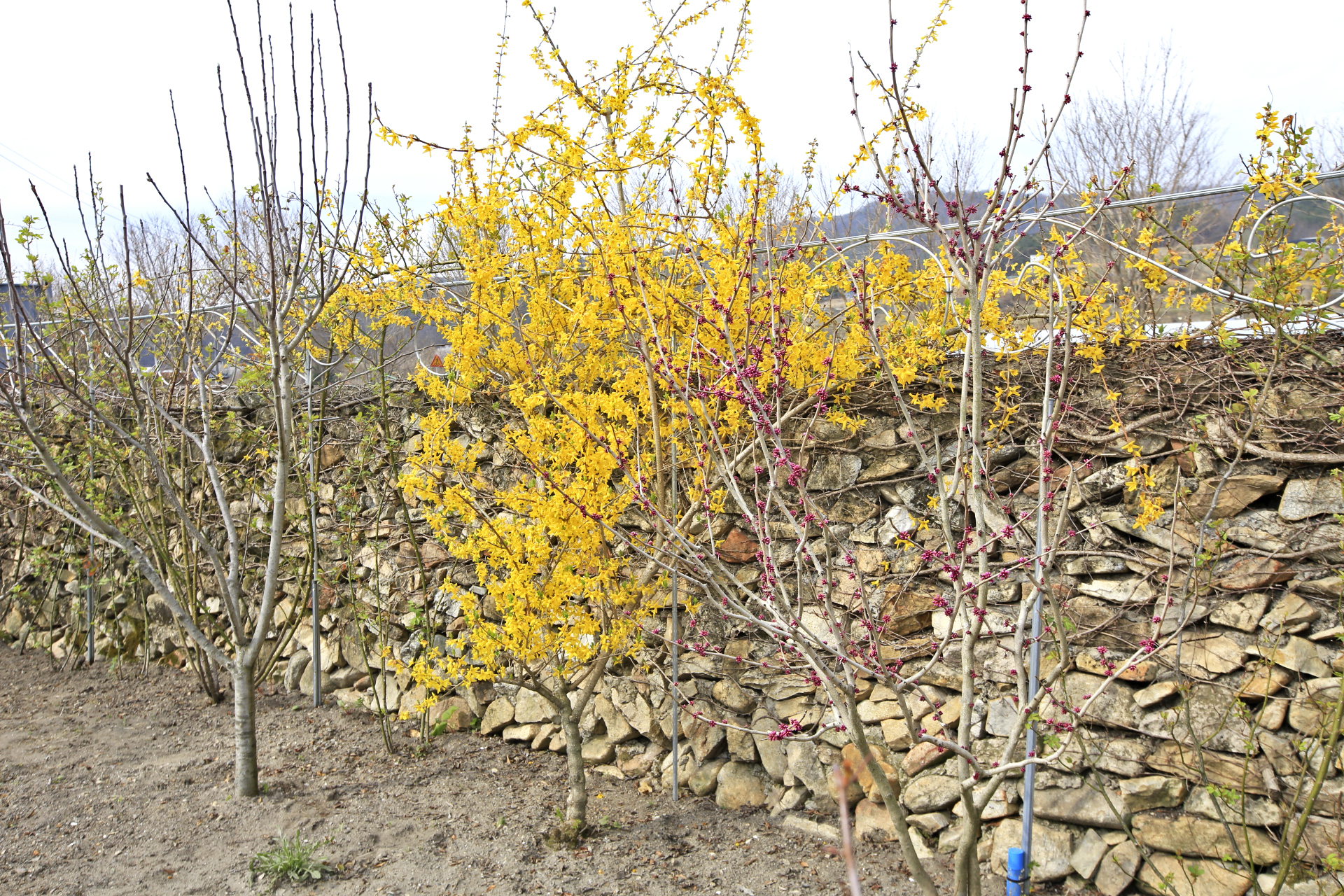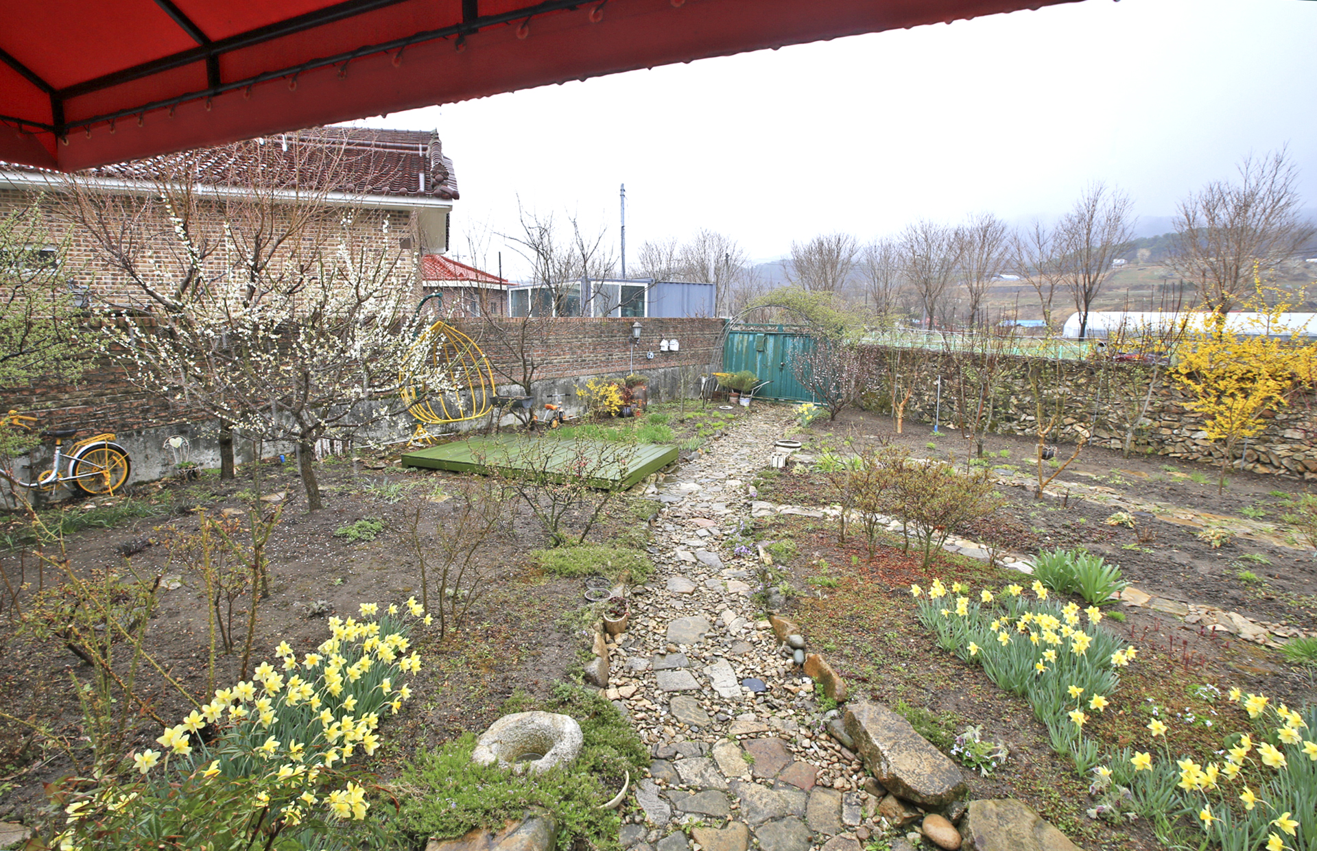 요즈음 성북동집 꽃밭에는 매화가 지기 시작하였고, 수선화와 개나리가 한창이다. 앵두나무와 명자나무와 꽃잔디가 꽃이 피기 시작하였고, 복숭아나무와 박태기나무가 곧 꽃을 피울 상태이다. 무스카리와 할미꽃과 서울제비꽃과 삼색제비꽃도 많이 피었다. 평년보다 조금 늦게 피기 시작하였지만 화려하고 풍성한 편이다.