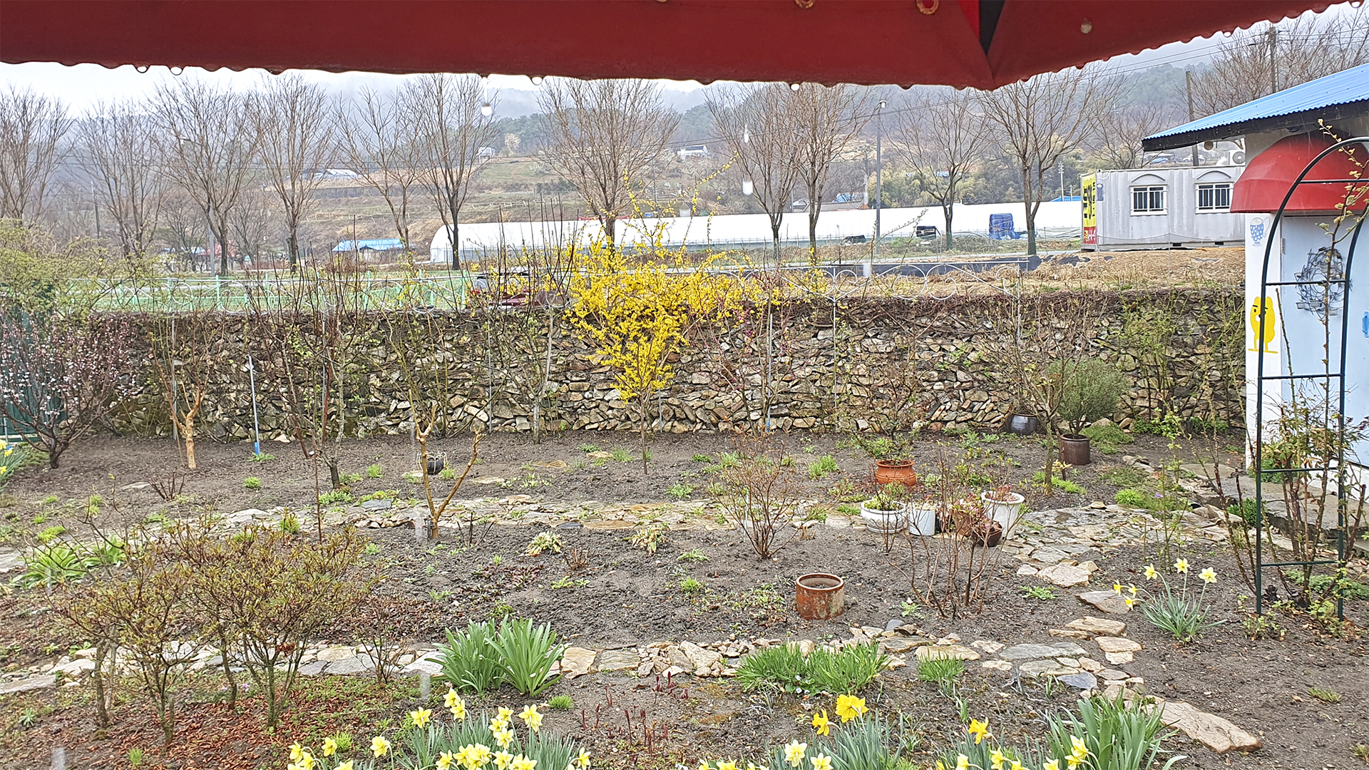 성북동의 아침 최저기온이 어제(0404)부터 드디어 영상기온이 되었다. 요즈음 몹시 가물었는데 오늘 낮에 비가 내린다는 일기예보가 있었다. 이른 아침에 구름 사이로 해가 어렴풋하게 보이더니 이내 흐려진다. 비가 내리기 전에 산책을 다녀오려고 홀목골에 갔는데 빗방울이 떨어지기에 중간에서 되돌아 왔다. 오늘 강수량을 보아가며 부족하다면 비가 그친 후에 꽃밭에 물을 뿌려주려고 하였다. 그러나 낮부터 비가 오다가 그치기를 반복하며 강수량(정림동)이 10mm이기에 따로 물을 뿌려주지 않아도 되겠다. 내일 오후에는 업무 차 서울집에 가야 하기에 새로 일을 벌이지는 않기로 하였다. 나는 별채방에서 PC로 촬영한 사진을 정리하여 블로그에 포스팅하고, 아내는 모처럼 꽃밭 일을 하지 않고?(못하고?) 전실에서 하루를 보냈다.