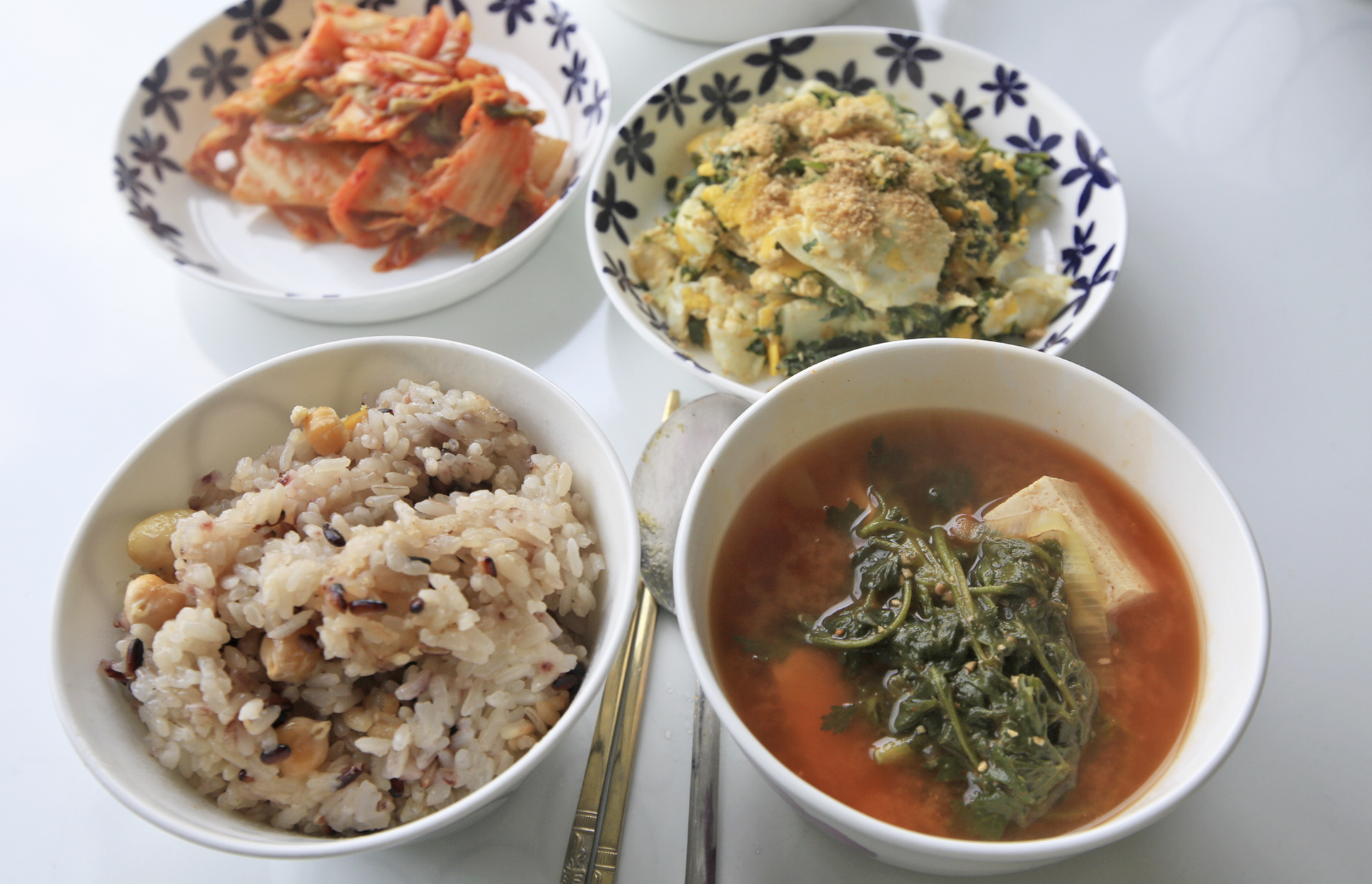 아침에 어제 뜯어 온 쑥으로 끓인 쑥국을 먹었다.