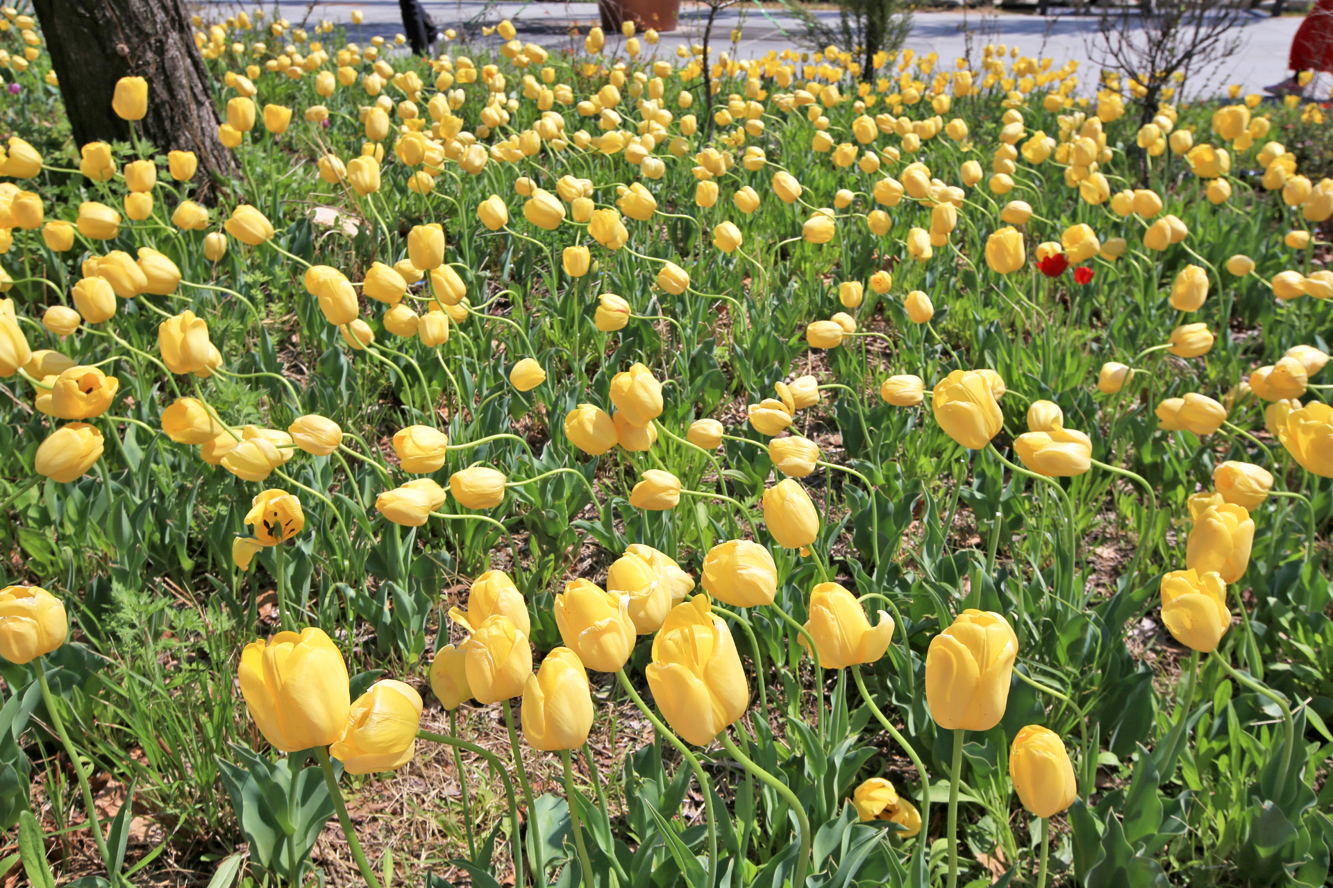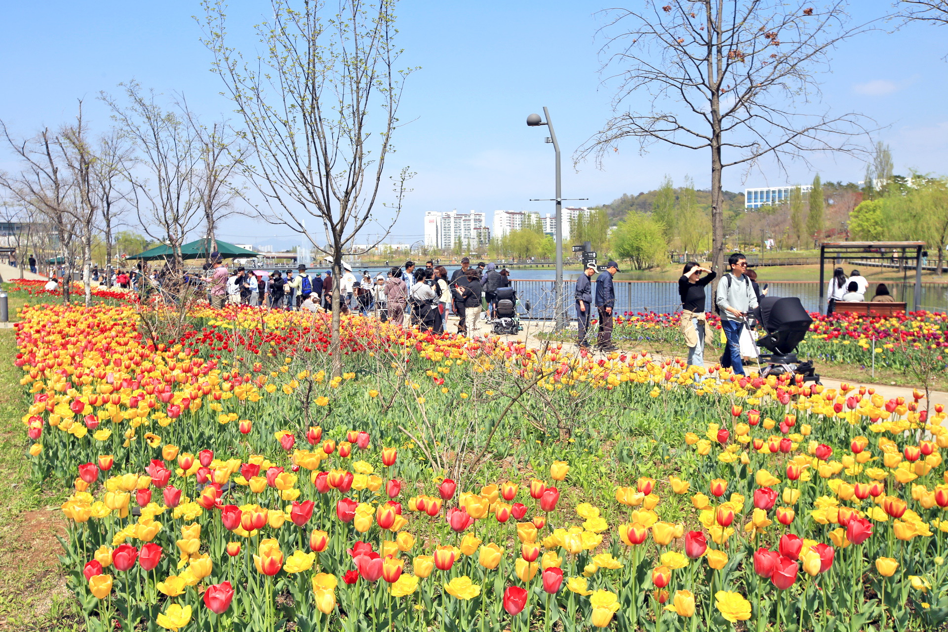 일요일 오후인데 햇빛이 따갑고 덥다. 아직 나뭇잎이 자라지 않아서 햇빛을 가리지는 못한다. 관람객으로 북적인다.