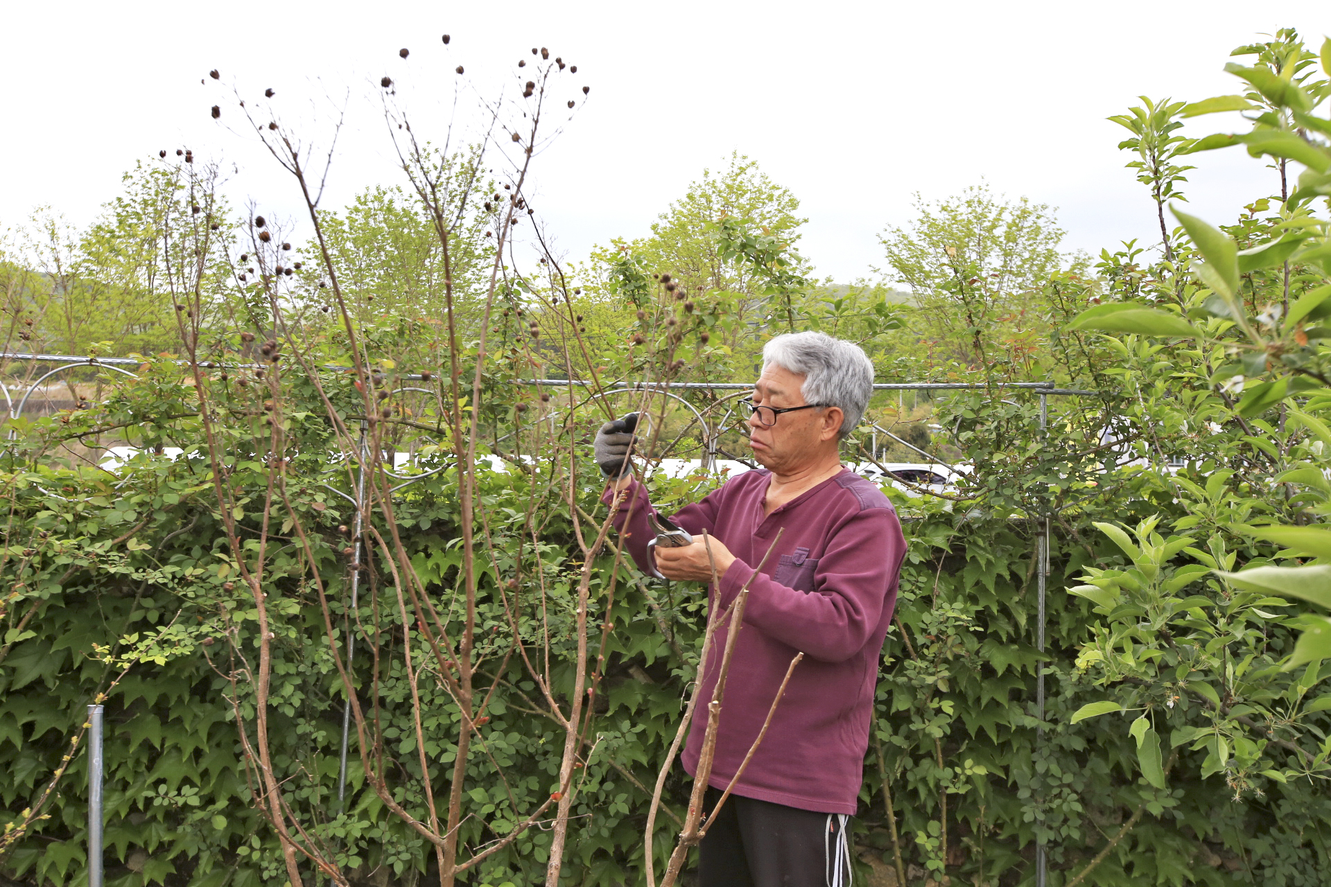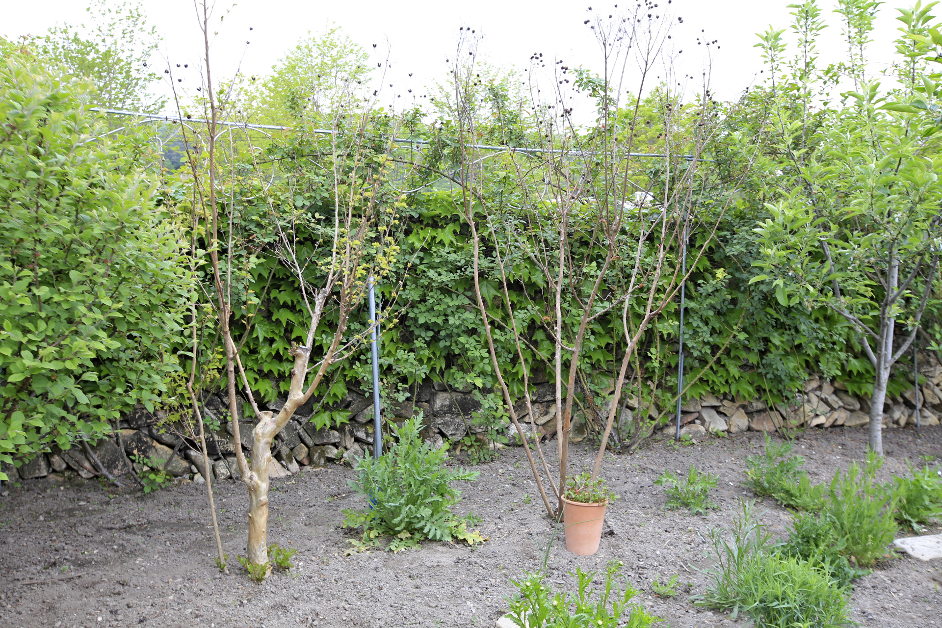 지난겨울에 배롱나무를 전지작업을 하지 않은 상태로 보온작업을 해 주었었다. 전번(20250327)에 보온재를 제거해 주었는데 이제야 새순이 돋아나기 시작하기에 전지작업을 해 주었다.