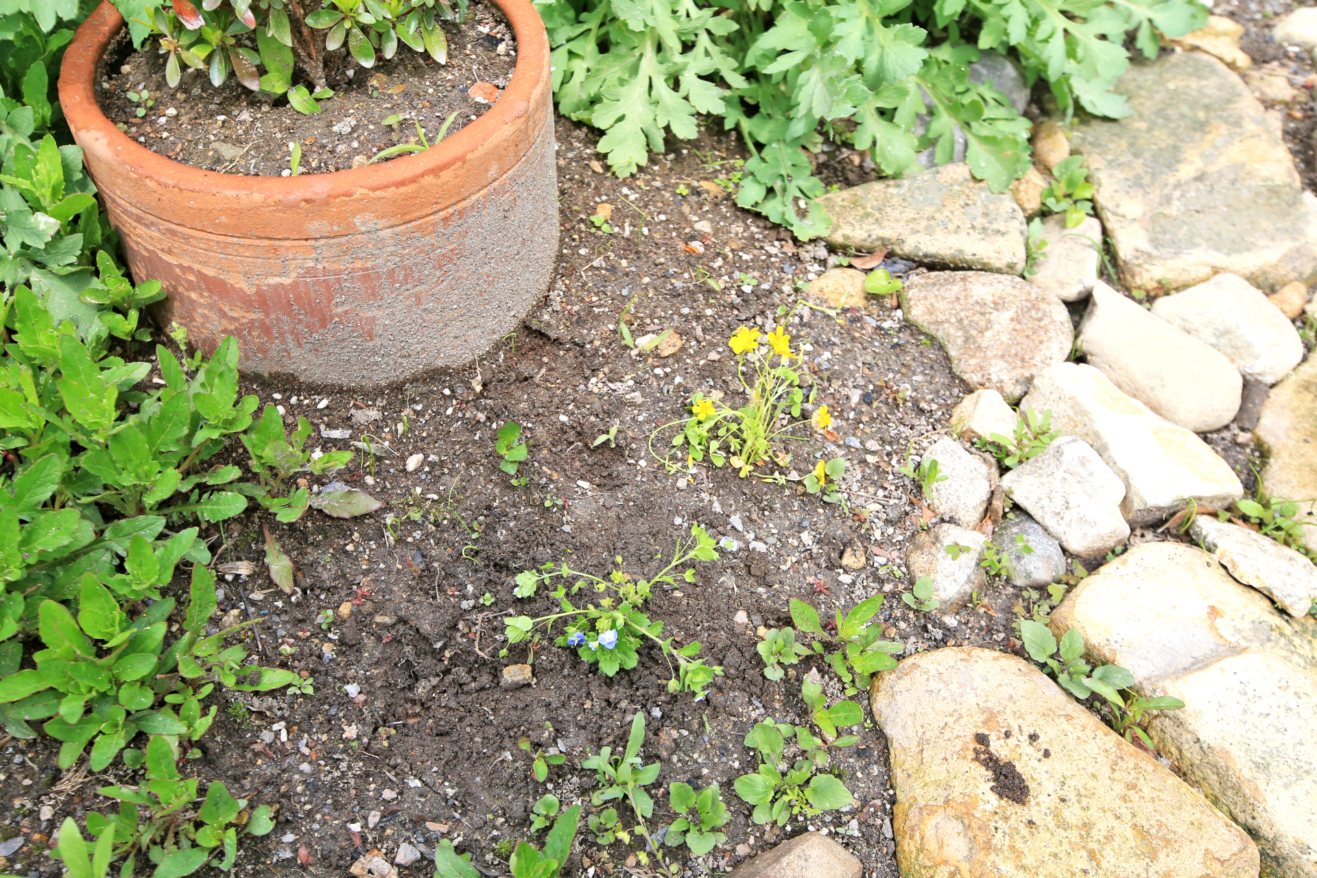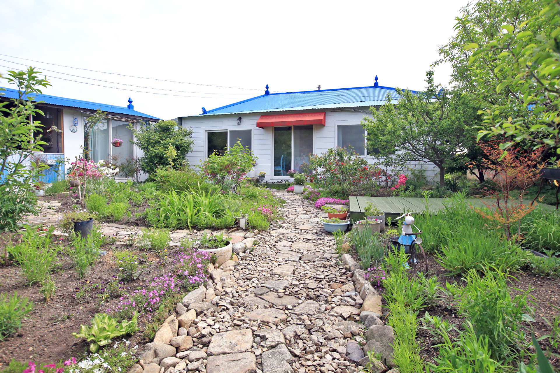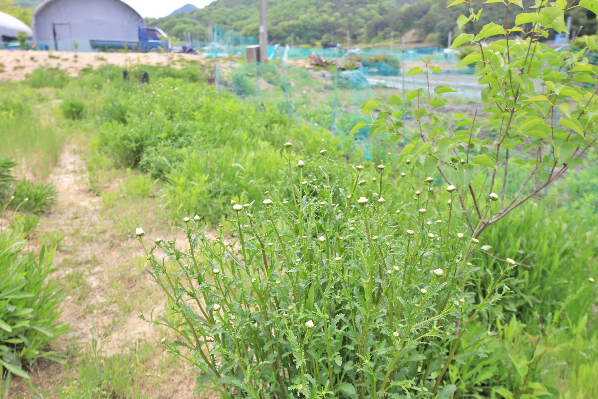 손자들이 오면 시키려고 돌을 깐 통로의 일부분의 풀을 뽑지 않고 남겨두었다. 꽃밭에서도 풀을 뽑을 수 있지만 꽃과 잡초를 구분 할 수 없기에 통로서....