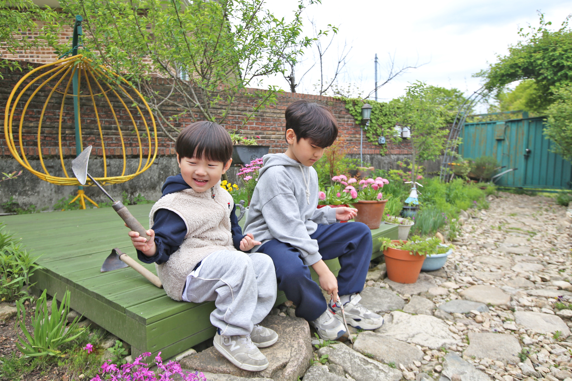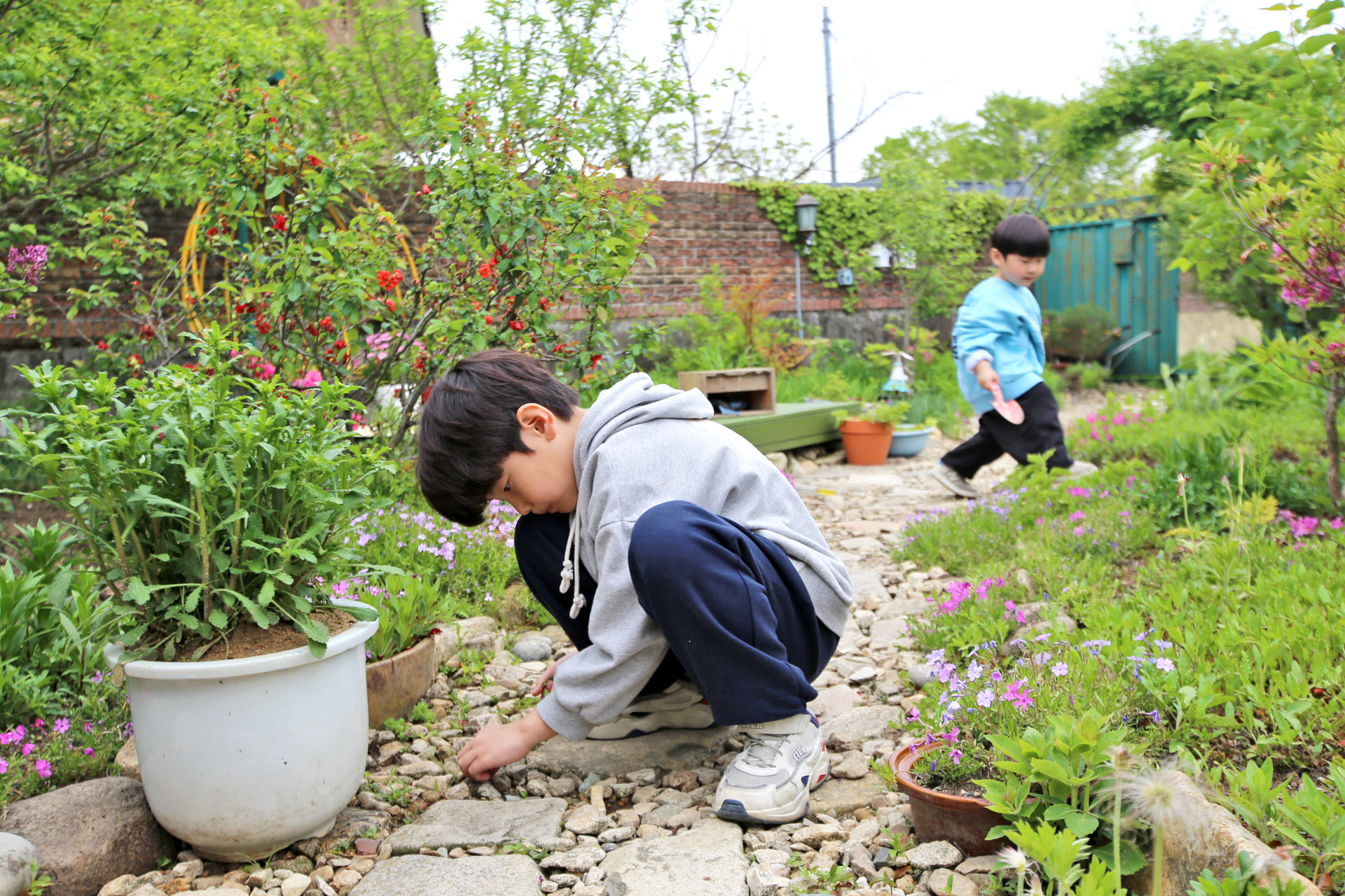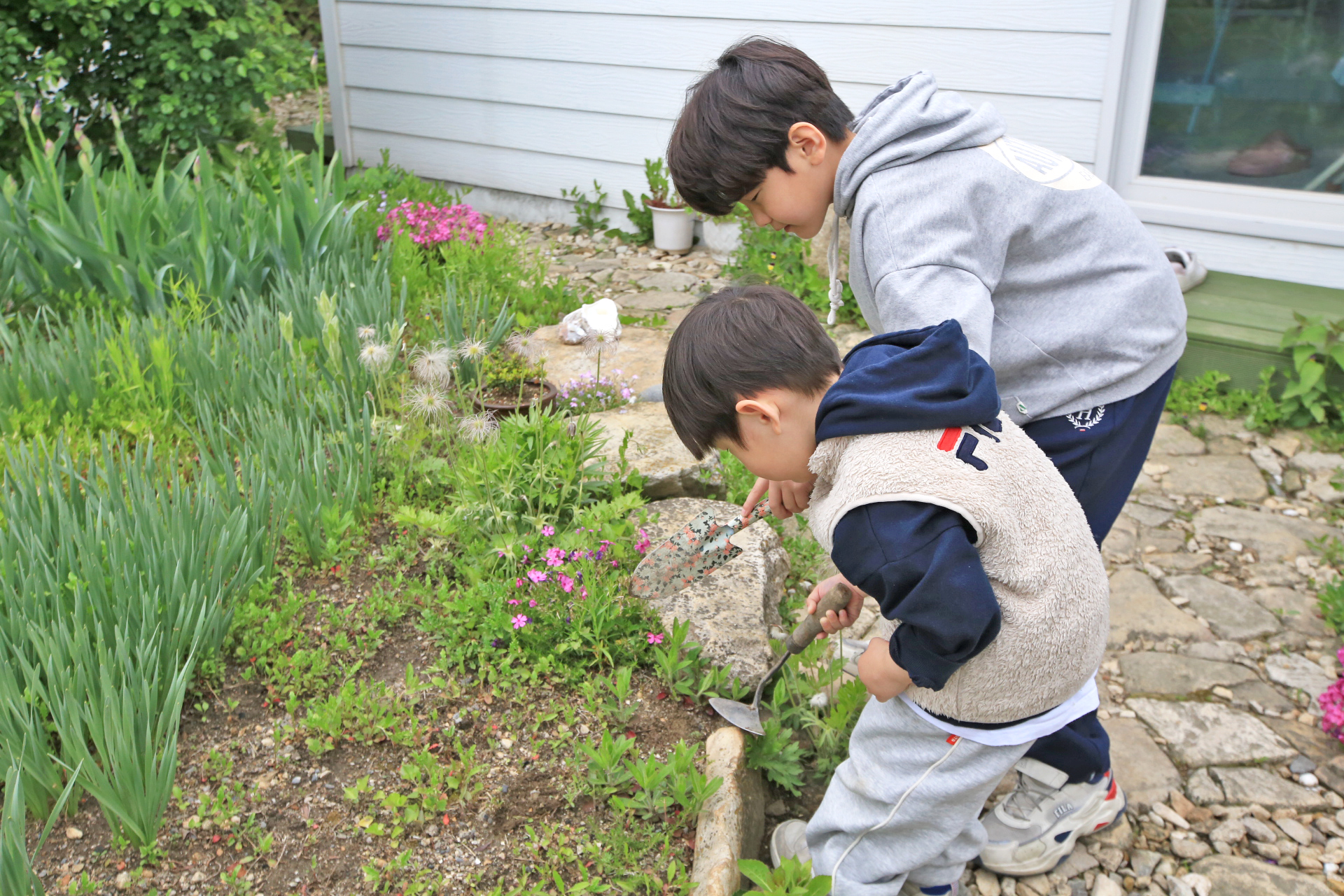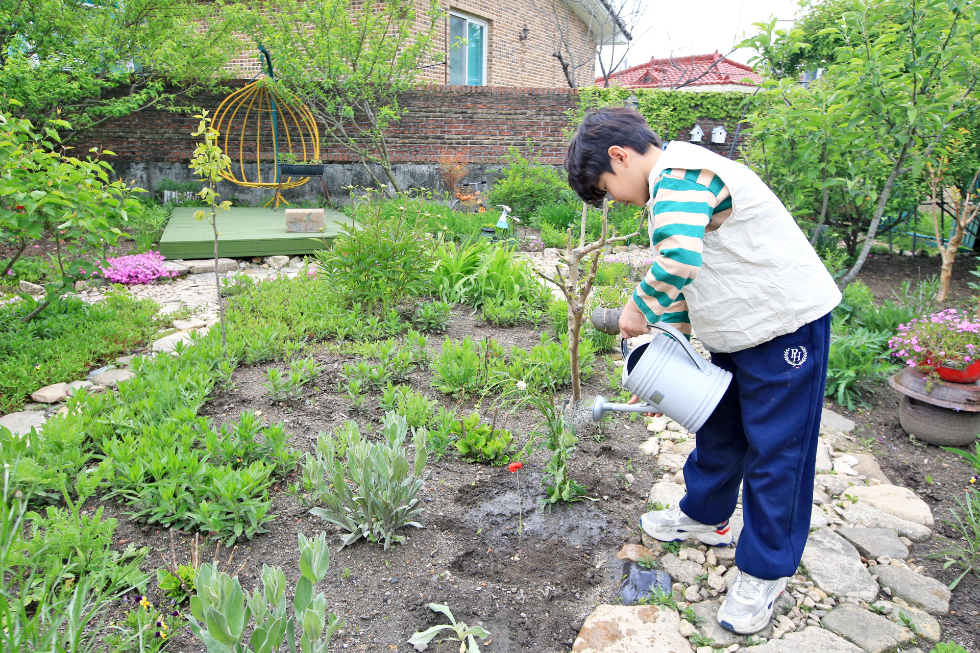 Jun네가 대천과 부여 여행을 마치고 엊저녁 늦게 성북동집에 도착하였다. 오자마자 잠자리에 들었는데 오늘 아침에 느지감치 일어났다. 누가 시켜서 하는 것이 아니라 손자들이 아침부터 할미꽃이나 민들레 씨앗을 따서 꽃밭에 심거나 마당에서 풀을 뽑거나 꽃밭에 물을 뿌려 주기도 한다. 재작년과 작년에 해 본 경험이 있기에 자연스럽게 시도한다.