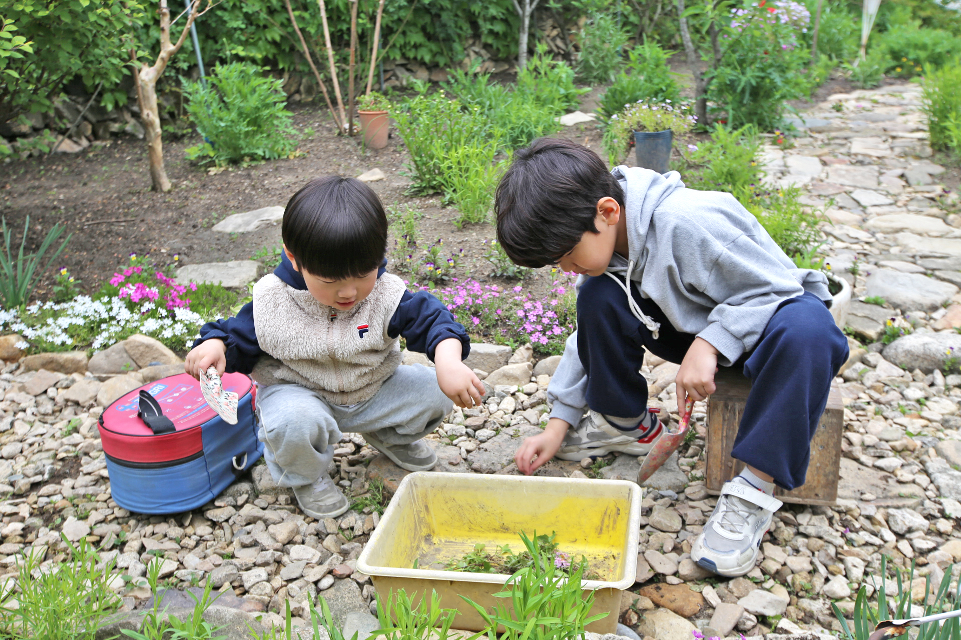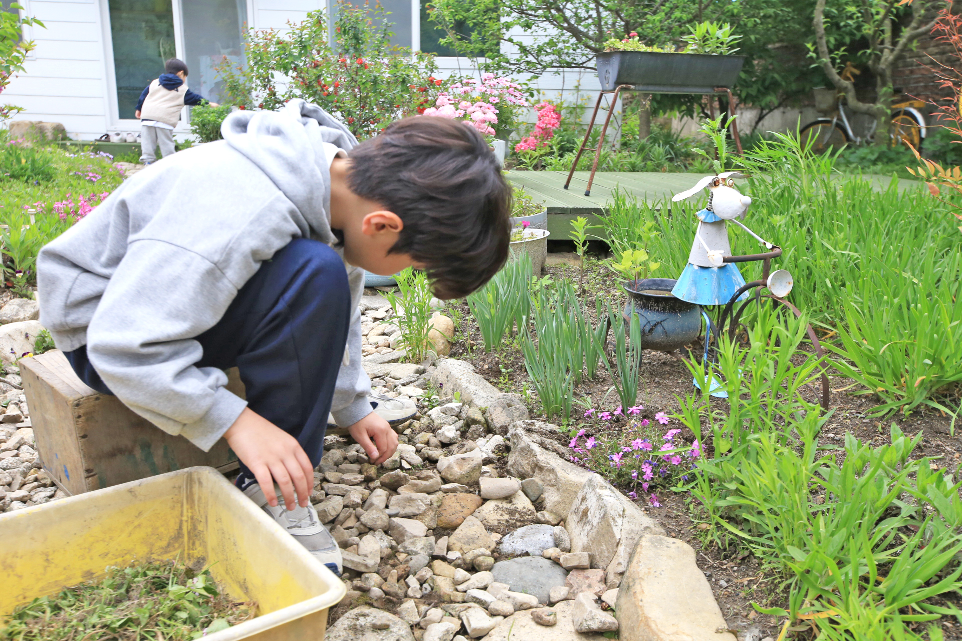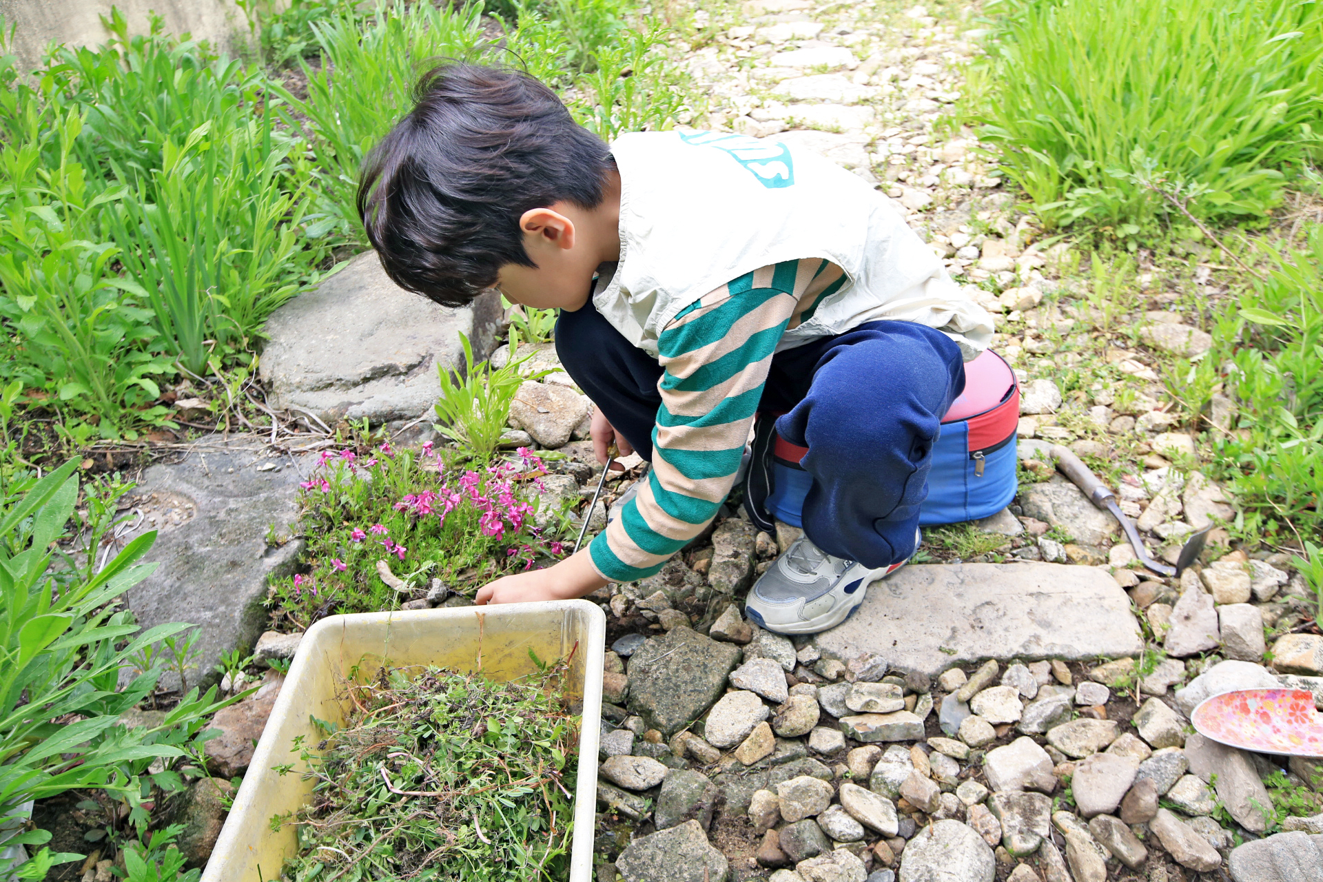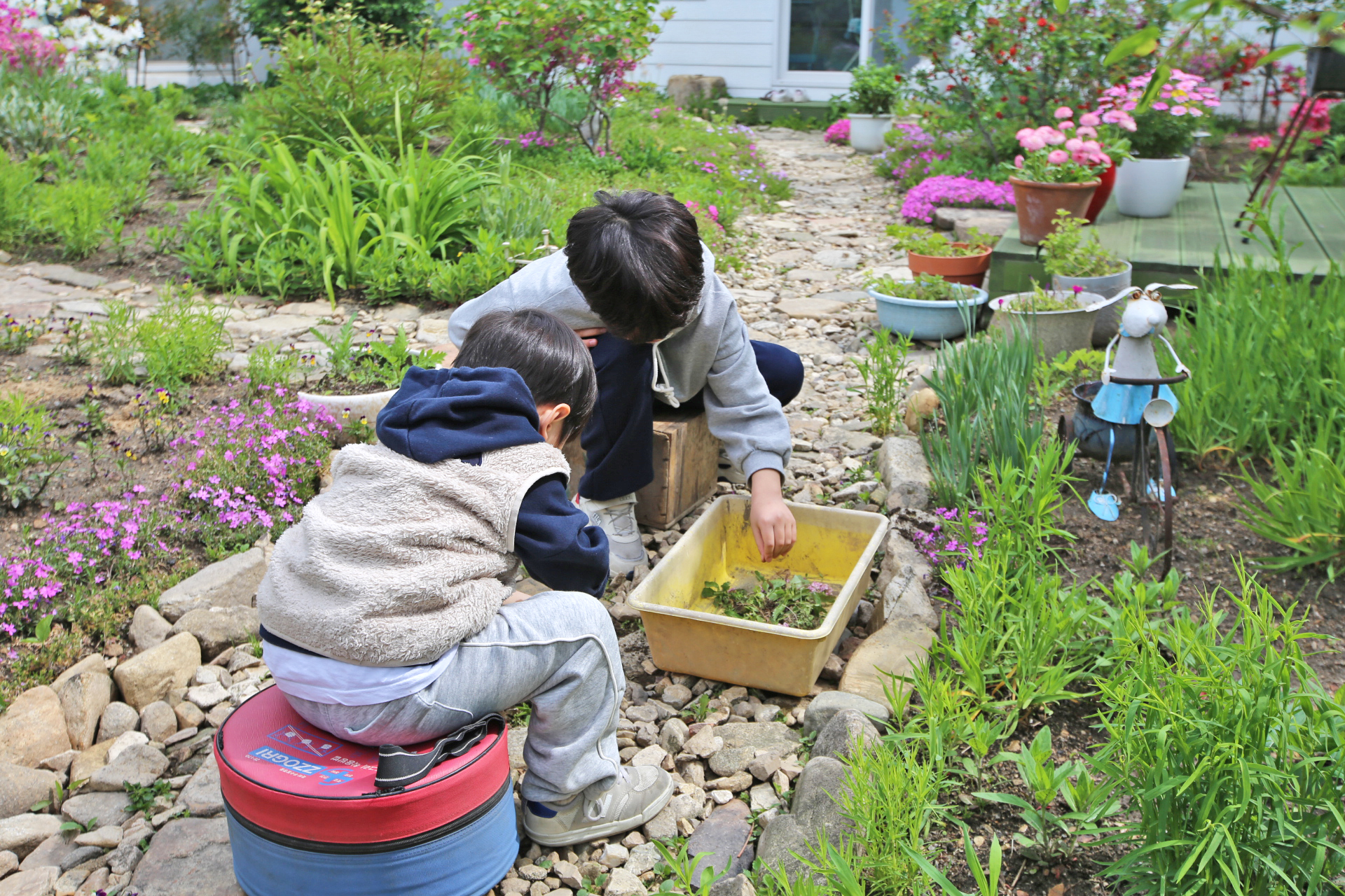 Jun네가 대천과 부여 여행을 마치고 엊저녁 늦게 성북동집에 도착하였다. 오자마자 잠자리에 들었는데 오늘 아침에 느지감치 일어났다. 누가 시켜서 하는 것이 아니라 손자들이 아침부터 할미꽃이나 민들레 씨앗을 따서 꽃밭에 심거나 마당에서 풀을 뽑거나 꽃밭에 물을 뿌려 주기도 한다. 재작년과 작년에 해 본 경험이 있기에 자연스럽게 시도한다.
