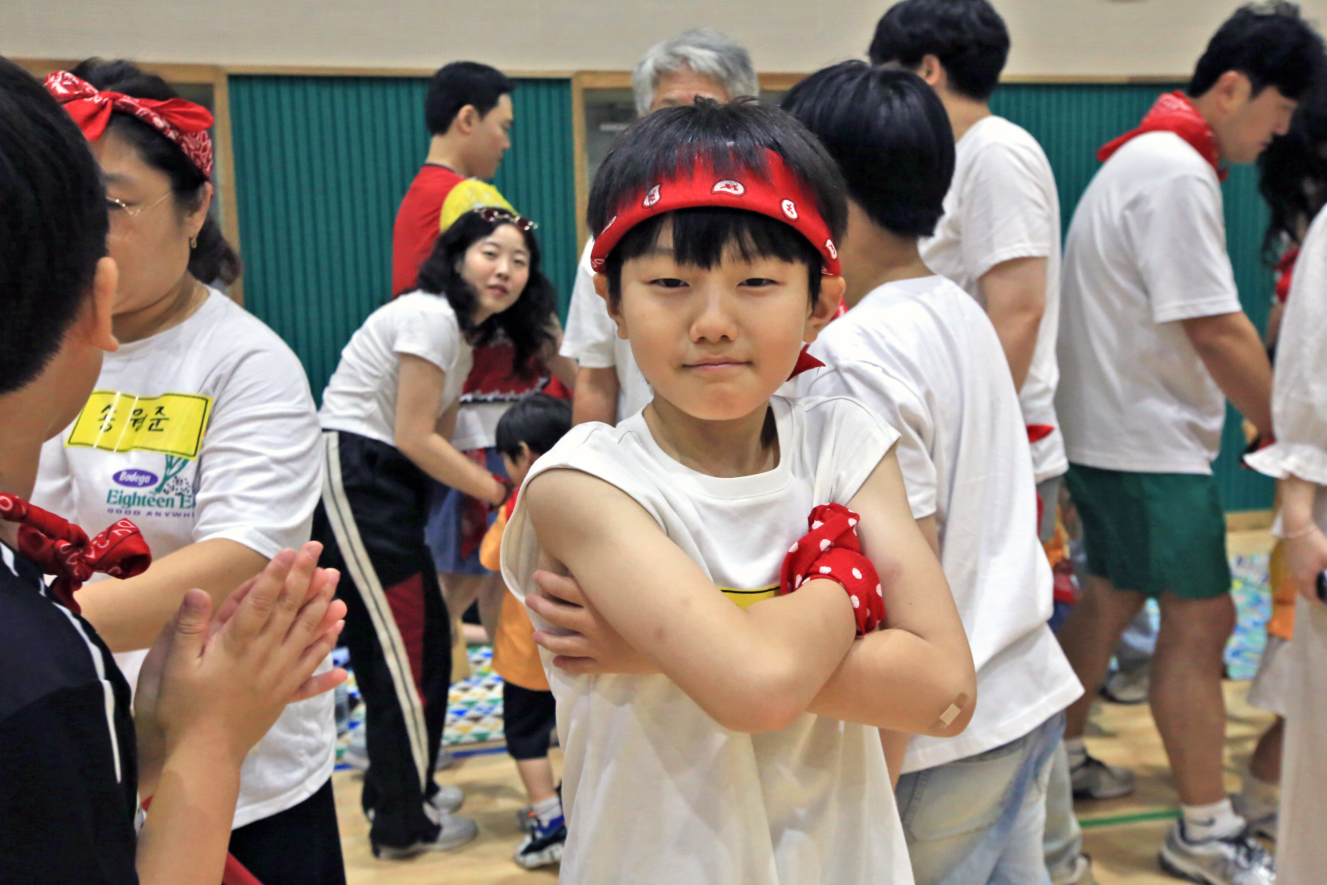 아직 식구들을 만나지도 못하였고, Seung이 홍군인지 청군인지도 모르지만 우선 경기하는 모습을 촬영하였다. 나중에 사진을 살펴보니 홍군에 애비가 바퀴굴리기를 하는 모습이 찍혔다.