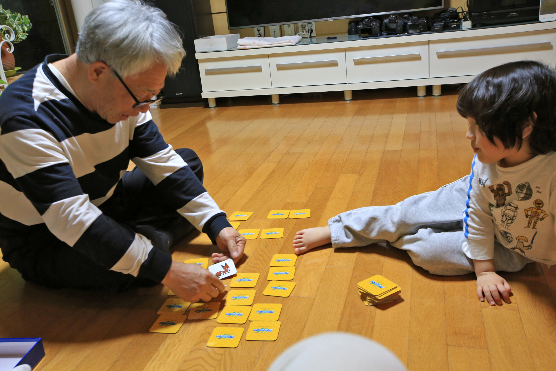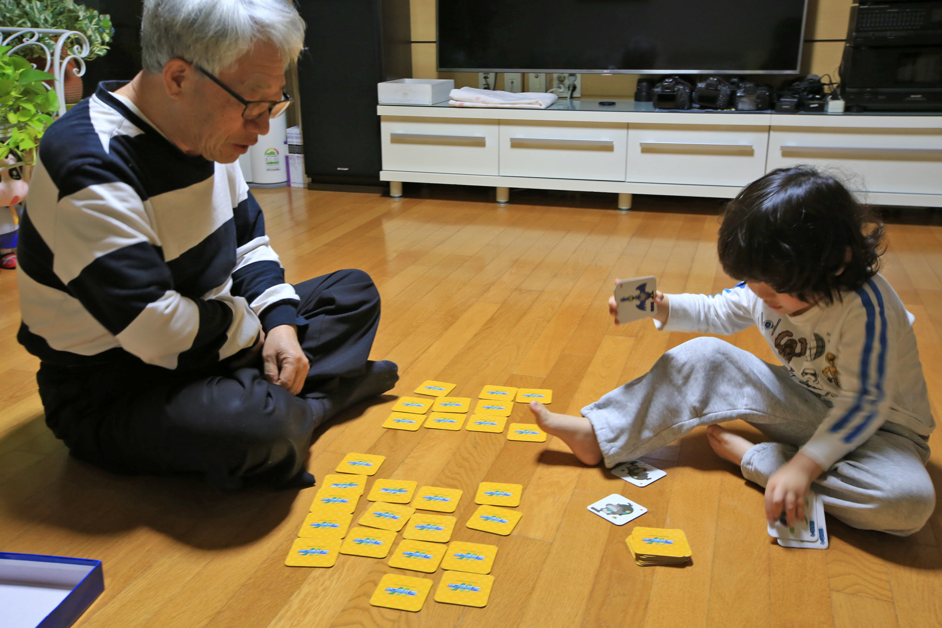 눈썰미가 남다르고 카드 그림의 특징을 알아서인지 나는 상대가 되지 않는다. Seung은 기억으로 나는 눈감땡감으로 하니 결과는 1:3으로 졌다.